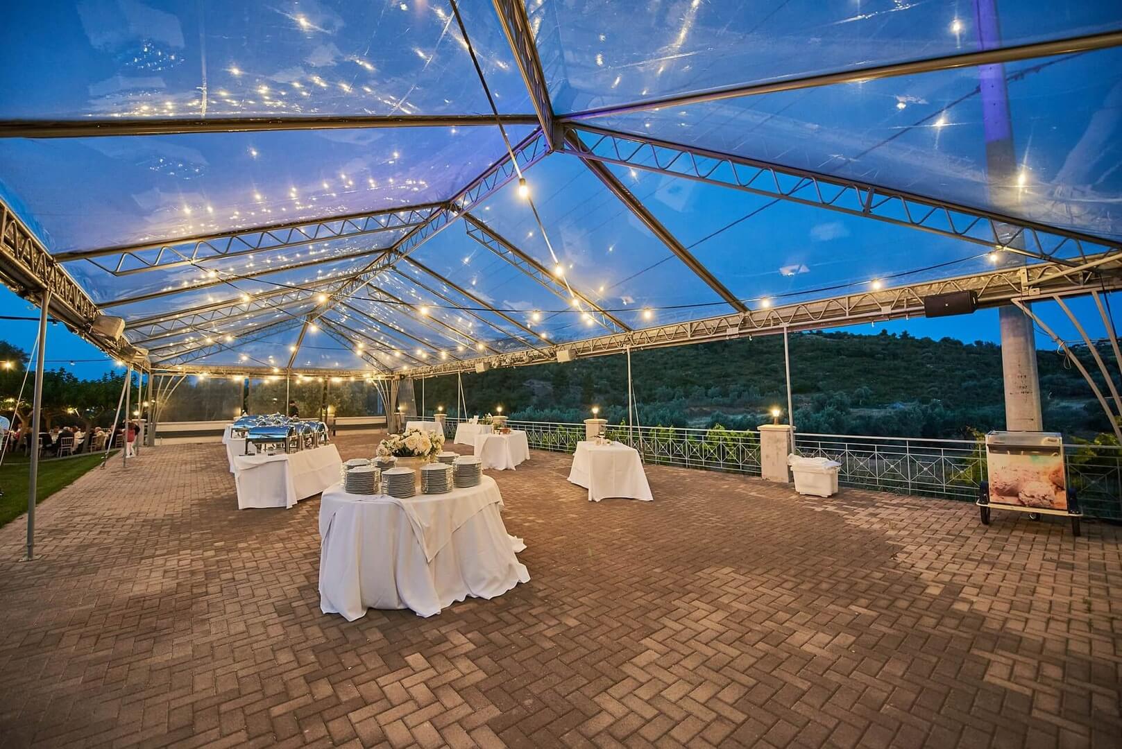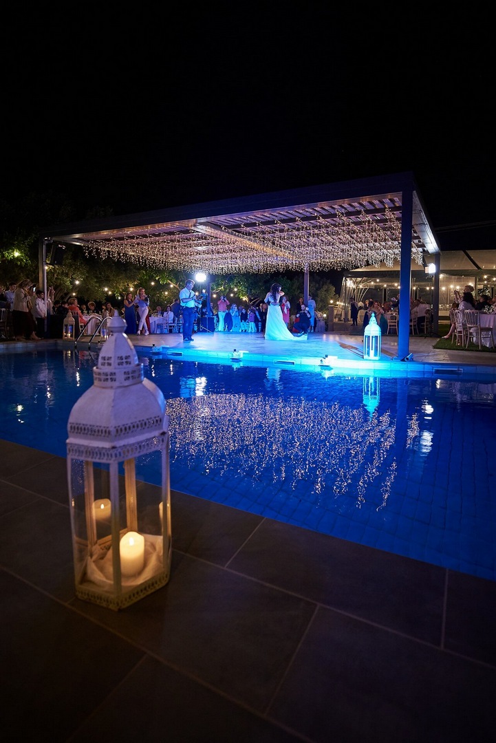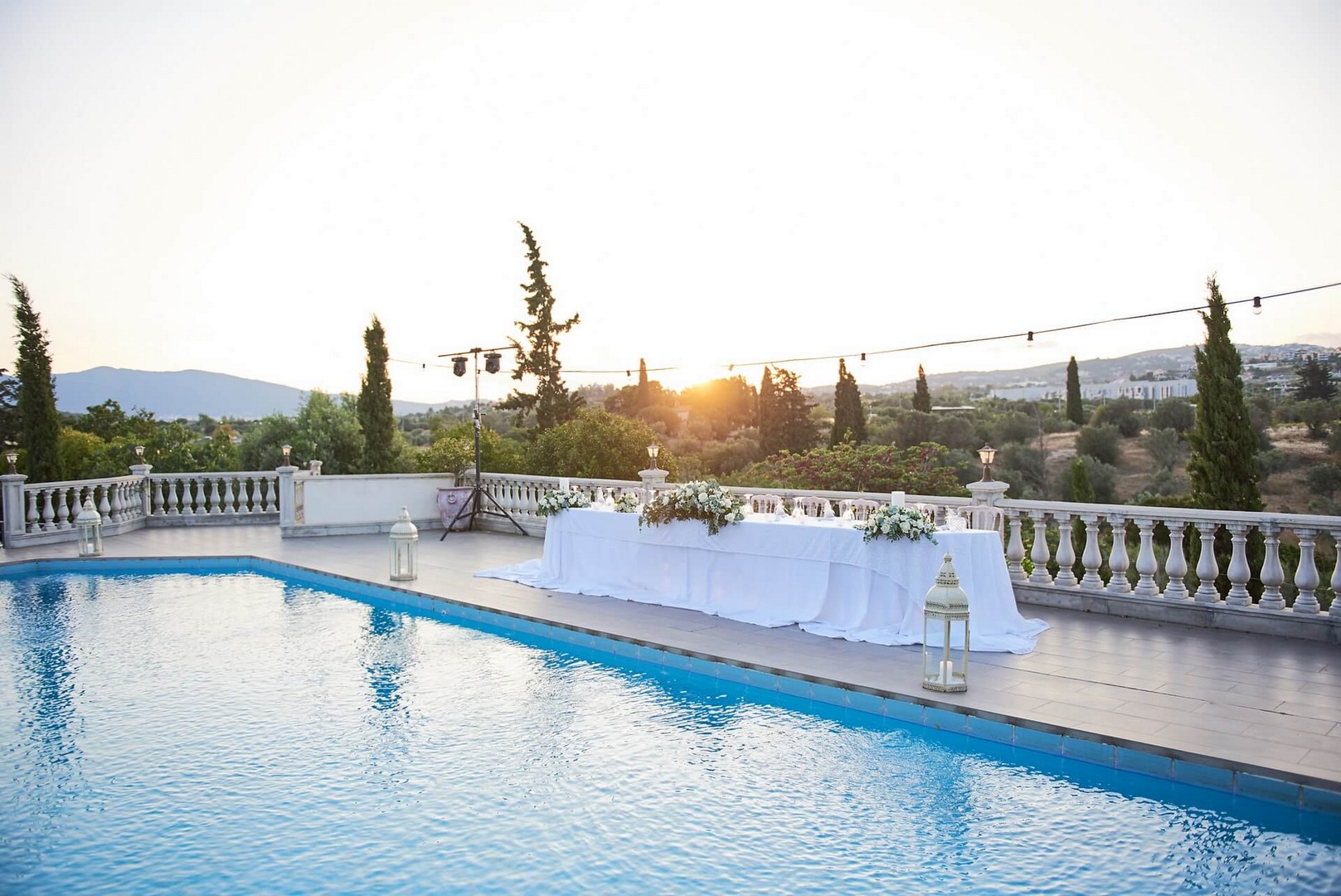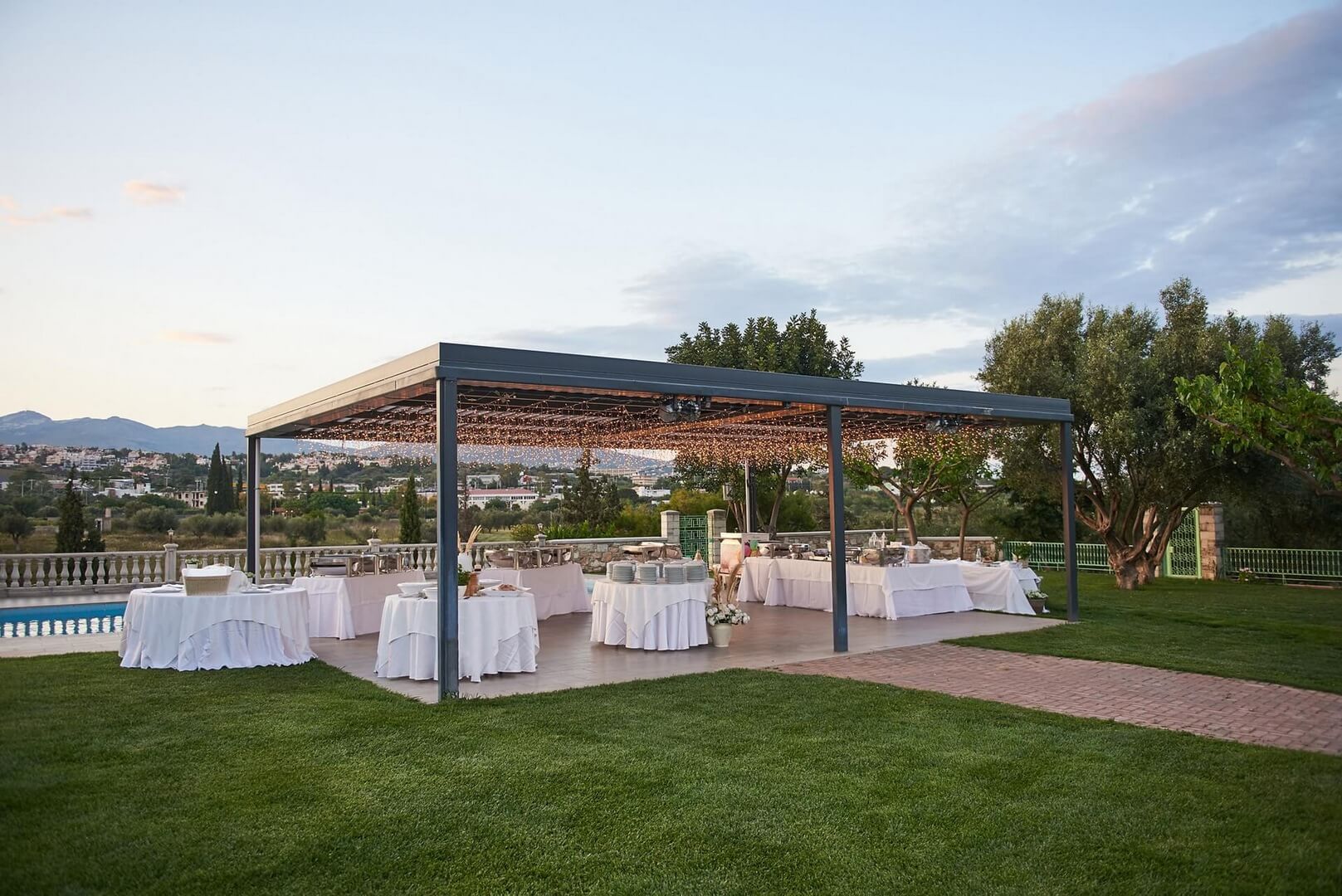 Η ζεστασιά και η διακριτική πολυτέλεια του κτήματος, από την πρώτη στιγμή, δημιουργούν μία αίσθηση οικειότητας και απελευθέρωσης, βασικά συστατικά μίας επιτυχημένης δεξίωσης. Την επαφή με τον κατάφυτο εξωτερικό χώρο και την πισίνα δεν θα τη στερηθείτε ακόμα και σε περίπτωση βροχής, καθώς ο minimal αισθητικής στεγασμένος χώρος, με διάφανη οροφή, σας προστατεύει από τις καιρικές συνθήκες, χωρίς να διαταράσσεται η αρμονία του χώρου.